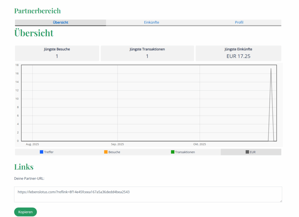 Mein persönliches Affiliate-Programm ist direkt mit deinem Nutzerkonto verknüpft. Das Ziel ist, dein Wissen authentisch zu teilen und dafür belohnt zu werden.